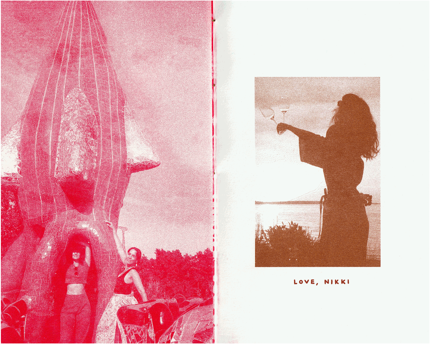 I turned this collection of my film photographs into a treasured object for my fabulous friend, Darby. I designed the book, lettered the type by hand, printed it with Risograph, and bound a copy for each of us with olive green thread.