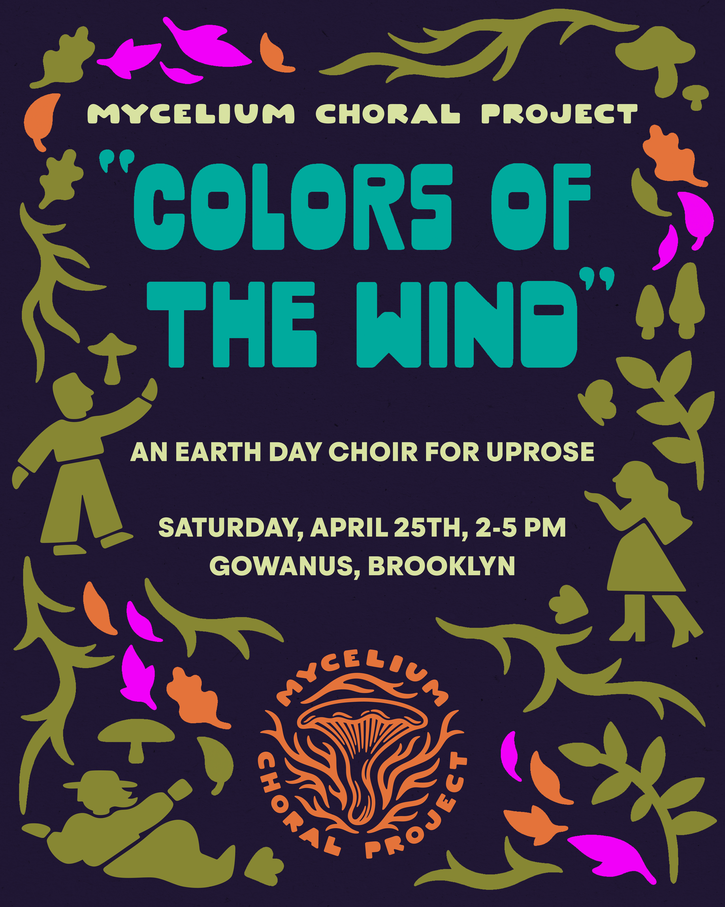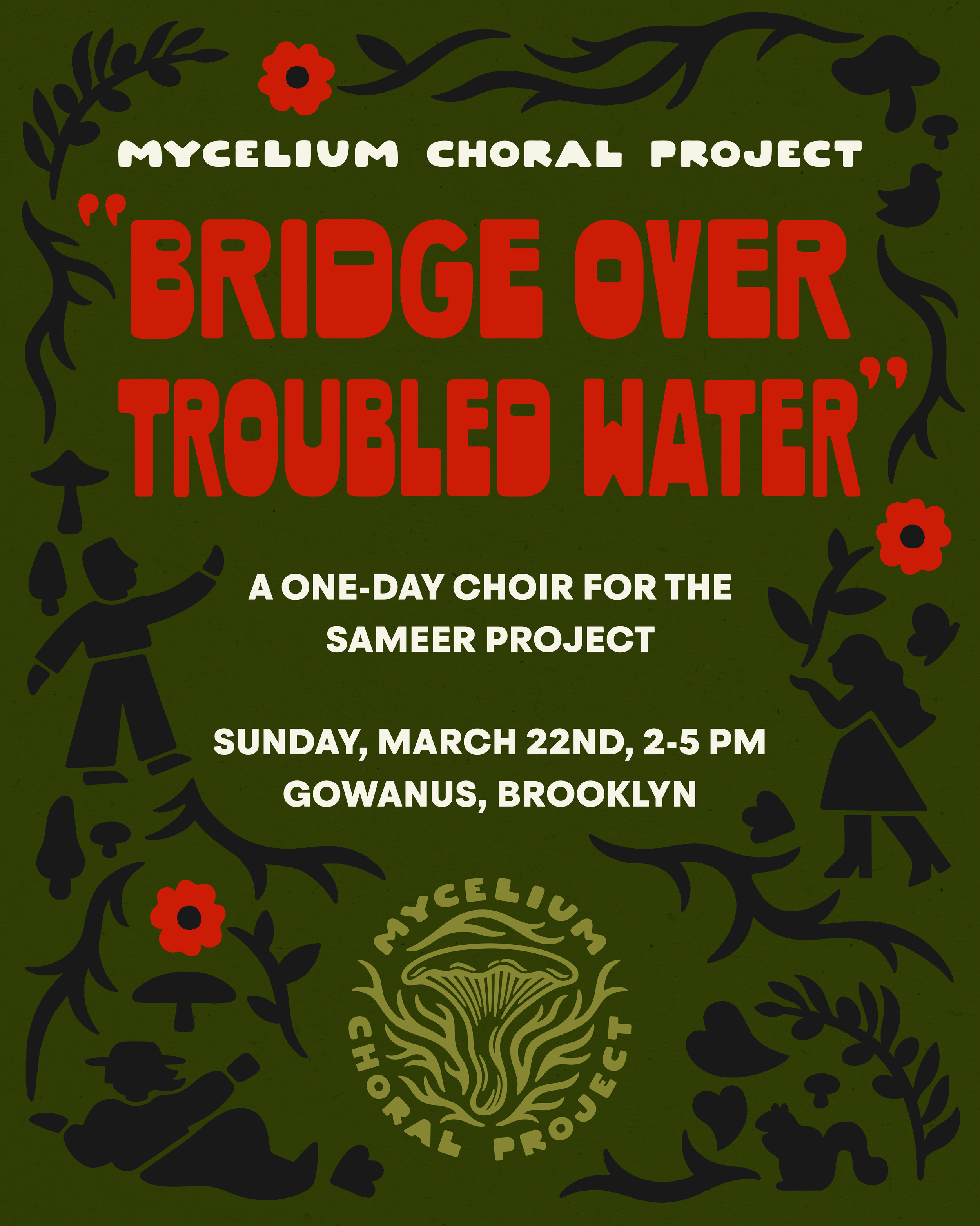 Logo design with illustration and hand lettering for Mycelium Choral Project, a series of one-day choirs that raise funds for NYC mutual aid collectives and grass roots initiatives.